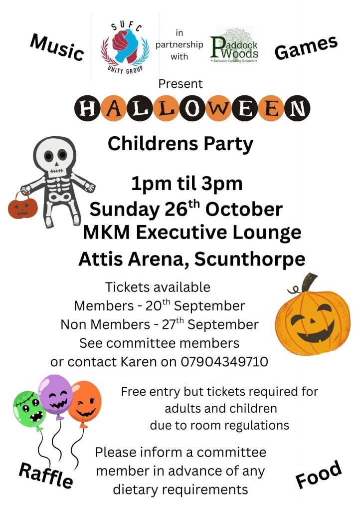 Its spooky season – The Unity Group are holding a halloween party for under 12s at the MKM Executive Lounge at the Attis Arena on Sunday 26th October from 1-3pm. Tickets are free but will be required by both adults and children due to room regulations. There will be food, music, games and activities for everyone. Please contact Karen for tickets.